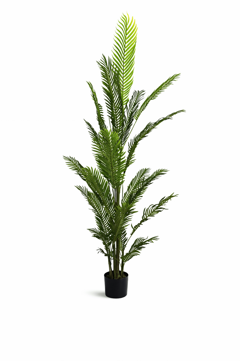 העץ מתאפיין בגזעים דקים עם מראה טבעות עדין ועלים ארוכים ומפורטים בגוון ירוק רענן, המדמים בצורה מדויקת דקל אמיתי. המבנה הגבוה והאוורירי יוצר תחושת גובה ונפח, מבלי להעמיס על החלל מושלם לסלון, משרדים, לובי, מסעדות וחללים מסחריים.